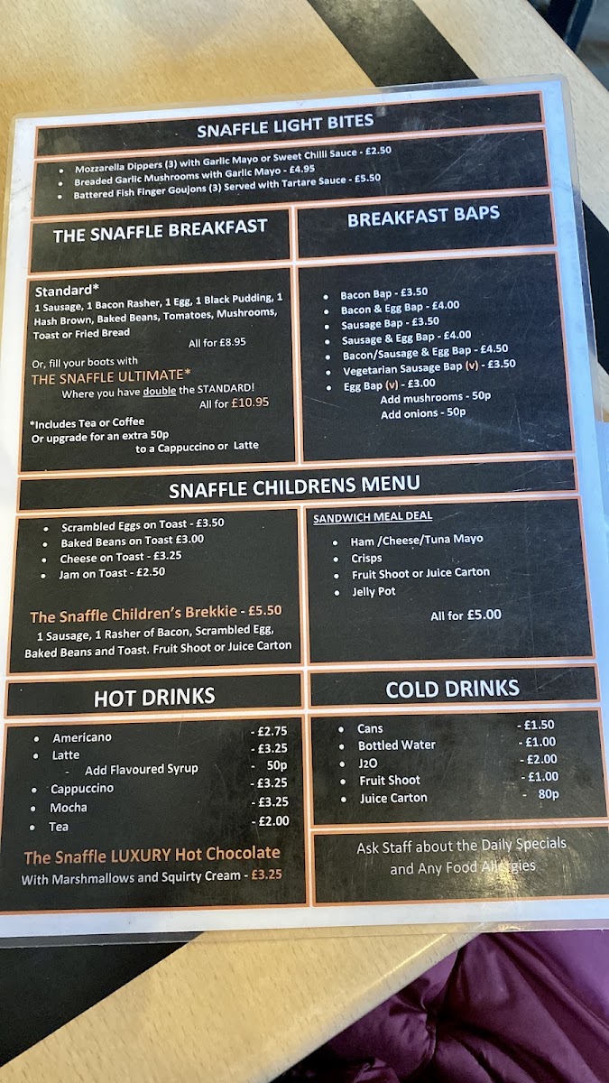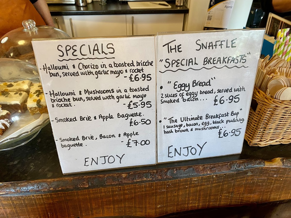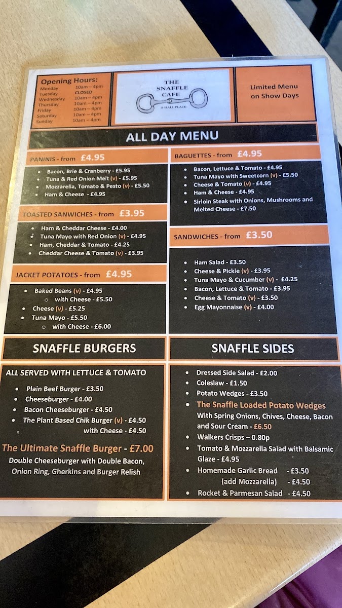 The Snaffle cafe Menu
